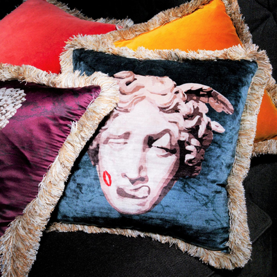 The charm of these throw pillows creations is magnified by the sensuality of cotton velvet and the delicacy of trimmings. They will cast a glow of exquisite provocation into your home.
