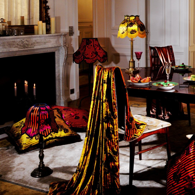 An epicurean collection of throw pillows, handmade lampshades and decorative throws that will spread delicious irreverence and fun chaos into your room.