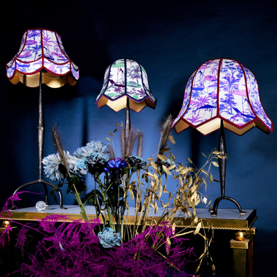 A harmonious yet quirky collection of throw pillows and handmade lampshades, embellished with the precious vibrancy of cotton silk and the exquisite refinement of trimmings.