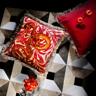 These damning and stealthy creations of throw pillows, decorative throws and handmade lampshades play with our senses and tickle our hidden desires in a poisonous dance.